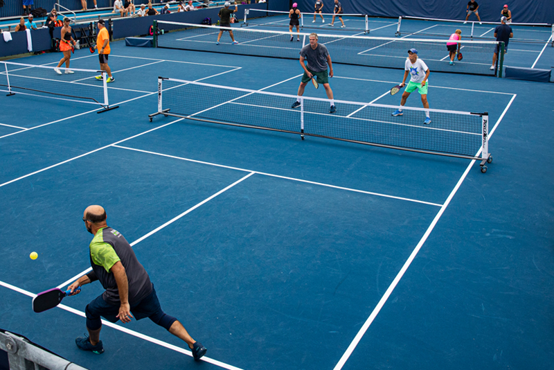 Pickleball is a hybrid sport that combines elements of tennis, badminton, and table tennis. It's played on a smaller court with paddles and a plastic ball. Easy to learn and enjoyable for all ages, pickleball offers a fun and social experience for players of all skill levels.